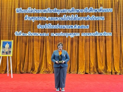 วันที่ ๒o มีนาคม พ.ศ. ๒๕๖๘ นายน้ำมนต์ โฆสะโก ผู้อำนวยการวิทยาลัยการอาชีพนวมินทราชูทิศ พร้อมด้วยคณะครูและบุคลากรทางการศึกษา เข้ารับโล่เชิดชูเกียรติ ในพิธีมอบโล่ประกาศเกียรติคุณสถานศึกษาอาชีวศึกษาต้นแบบด้านคุณธรรม และความโปร่งใสในการดำเนินงาน โดยได้รับเกียรติจาก นายยศพล เวณุโกเศศ เลขาธิการคณะกรรมการการอาชีวศึกษา เป็นประธานในพิธีมอบโล่เชิดชูเกียรติให้แก่ ๑o๒ สถานศึกษาอาชีวะต้นแบบด้านคุณธรรมและความโปร่งใส ประจำปีงบประมาณพ.ศ.๒๕๖๗ ในครั้งนี้ ณ หอประชุมคุรุสภา กระทรวงศึกษาธิการ กรุงเทพมหานคร