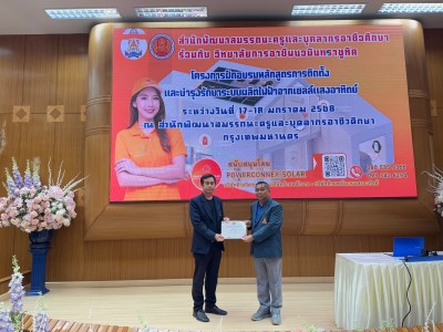 เมื่อวันที่ ๑๗ มกราคม ๒๕๖๘ นายน้ำมนต์ โฆสะโก ผูัอำนวยการวิทยาลัยการอาชีพนวมินทราชูทิศ ได้มอบหมาย นายตันฑัชย์ ขันปาน กล่าวรายงานพิธีเปิดโครงการฝึกอบรมหลักสูตรการติดตั้งและบำรุงรักษาระบบผลิตไฟฟ้าจากเซลล์แสงอาทิตย์ โดยมี นายยงยุทธ ใจซื่อดี ผู้อำนวยการกลุ่มงานพัฒนาวิชาชีพด้านอุตสาหกรรม เป็นประธาน ในพิธีโครงการอบรมฯ ดังกล่าว ซึ่งมีผู้เข้าร่วมอบรมจากวิทยาลัยต่างๆ สังกัดสำนักงานคณะกรรมการการอาชีวศึกษา อบรมโครงการระหว่างวันที่ ๑๗-๑๘ มกราคม ๒๕๖๘ ณ สำนักพัฒนาสมรรถนะครูและบุคลากรอาชีวศึกษา กรุงเทพมหานคร